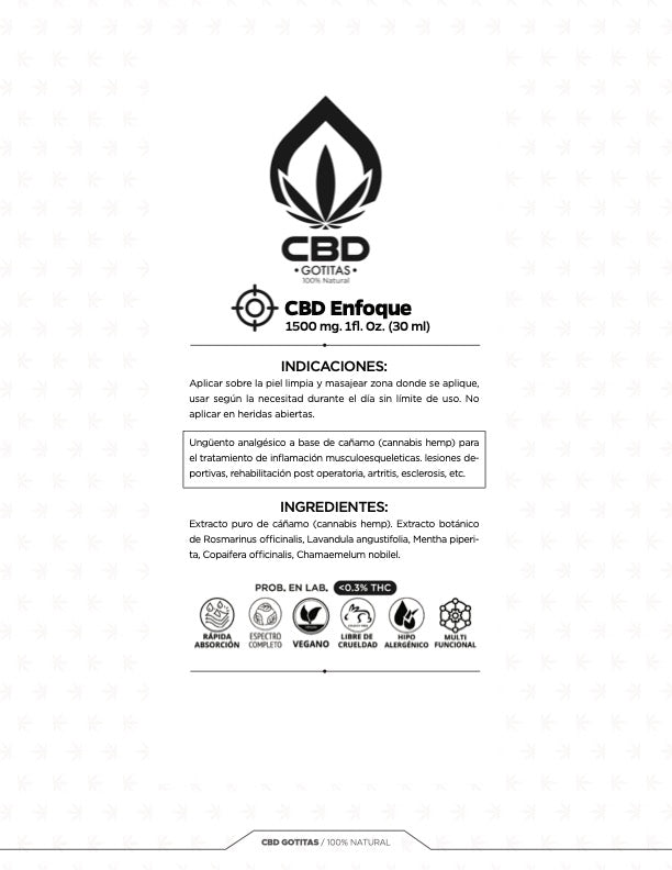 El ungüento de CBD Enfoque esta diseñado para aliviar directamente sobre el punto de aplicación.
